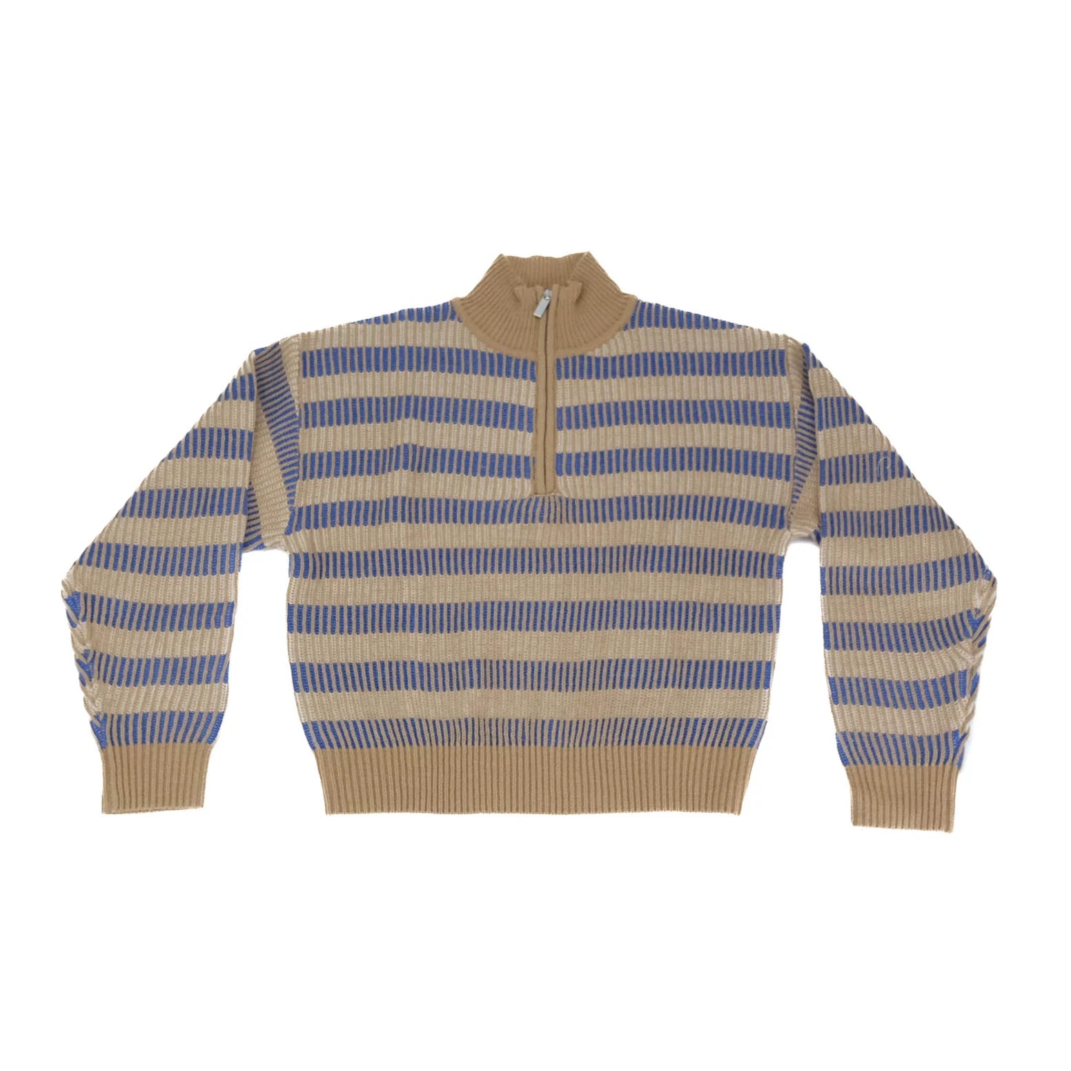 Rhythm Estelle Quarter Zip Striped Knit-Cobal