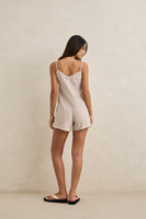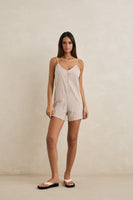 The Valley Stripe Adjustable Romper is a playful embodiment of coastal vibrancy. Crafted from 100% cotton, its adjustable straps and striking stripes invite you to embrace the dynamic beauty of the coast, making it an essential piece for those sun-filled beach days.