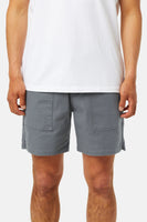 Inspired by one of our original 1970's walk-short designs, the Trails Short is a new addition to our walk-short collection. Made from a durable 98% cotton canvas 2% spandex canvas fabric, the Trails Short has a 16.5" outseam and features as elastic cinched waistband, front patch pocket, back welt pockets, notched side seam hem, faux fly and internal diagonal pinstripe binding.