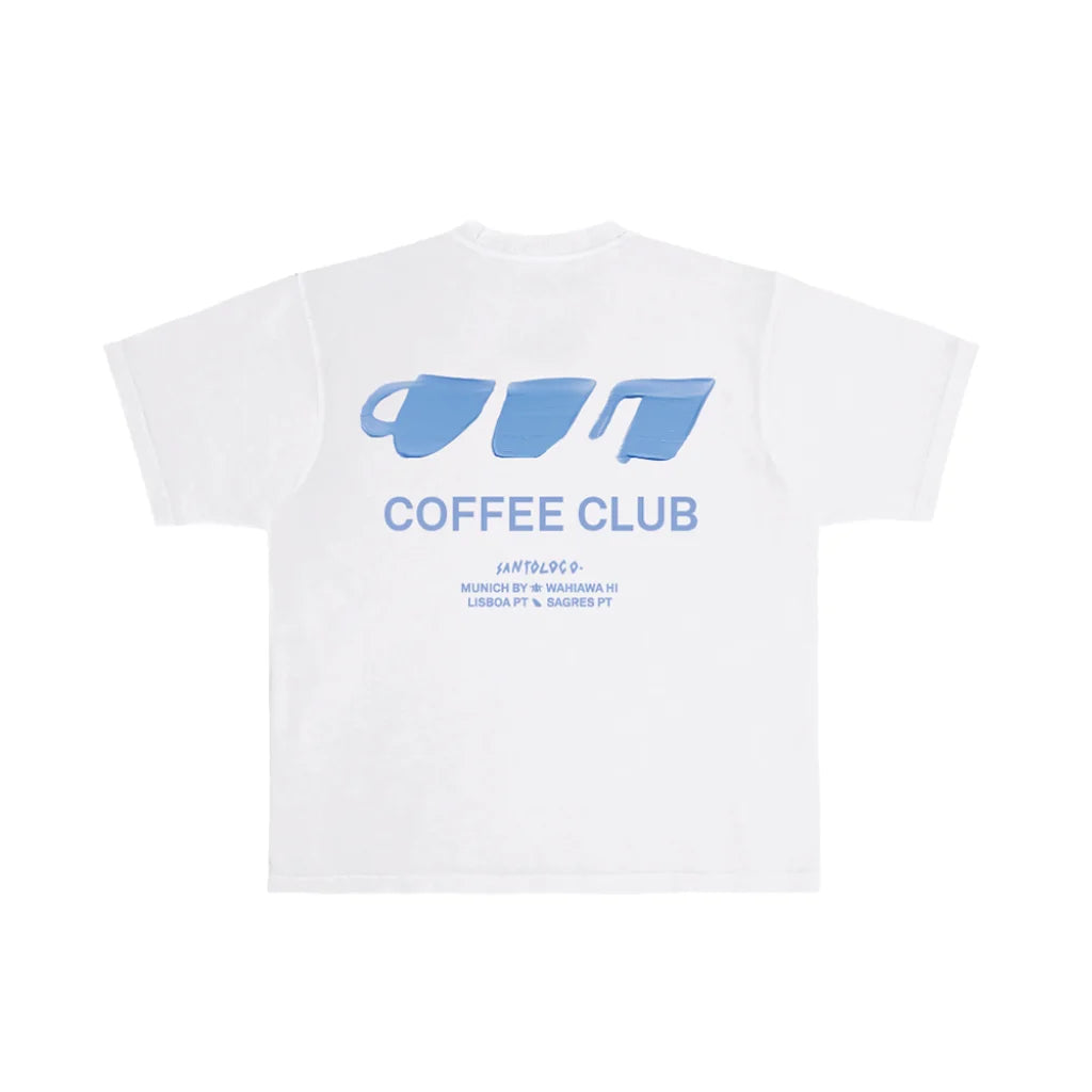 On the front, the minimal SantoLoco touch. On the back, the bold Coffee Club artwork — a tribute to the brews, beaches, and good energy that shape our days.