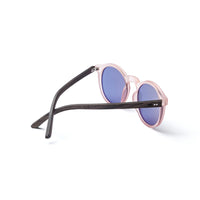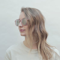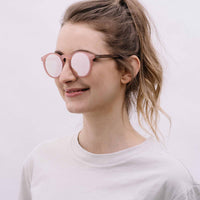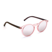 Molly is one of our extroverted models. The pink frame makes a striking combination with the silver mirrored lenses. Complemented by the walnut temples, Molly sits best on narrow to medium-width faces. These sunglasses are made in a completely revised construction. The innovative layered construction of the wooden temples offers even more support and comfort. All in the familiar TAKE A SHOT style. Our wooden sunglasses 2.0. Molly is delivered in a durable cardboard box with a matching cleaning cloth.