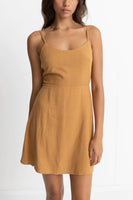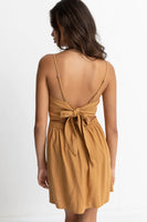 Crafted from a soft and drapey linen rayon blend, our Brigette Mini Dress is a stand-out, slip-style piece with a firm fitted bodice and adjustable back tie. Slim fitting with a flattering scooped neckline and slight a-line skirt silhouette.