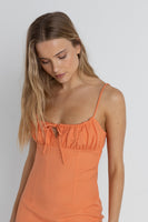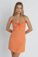 The Andie Gathered Mini Dress in Peach is a nod to timeless coastal charm. Made from a rayon-linen blend, this slim fitting, milkmaid-style slip dress features adjustable front gathering, a keyhole neckline, and an invisible back zipper. Ideal for sun-kissed days and seaside adventures, it offers a blend of comfort and effortless style.----Material75% RAYON 25% LINEN