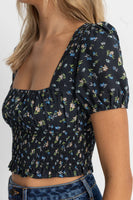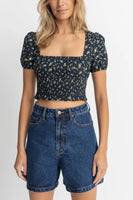 Embrace relaxed elegance in this short-sleeve Fluer Floral Top. Made from a Cotton and Linen blend, it comes with a captivating hand-drawn print artwork designed in-house by the Rhythm team. In addition to the squared neckline, the piece features smocked detailing to enhance its already effortless charm.