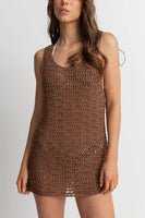 The Maddie Knit Scoop Neck Mini Dress by Rhythm is the perfect piece for looking for the nostalgic 70s vibe. With its woven slim crochet knit fit and scoop neck detail, this overswim dress is both comfortable and stylish.