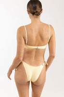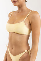 In a bold two tone Daffofil rib, the Noumea Crop Top is made for cooling off poolside under balmy summer sunsets featuring a wide scooped neckline and encased boning for a-c cup sizes. Match with the Noumea pant or mix, clash and have some fun.