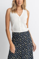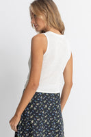 Unveil effortless sophistication with the Sunrise Knit Vest crafted from a soft Cotton and Nylon blend. Its loose, draped stitch design, V-front neckline, and front button closure offer a chic, laid-back vibe, and it pairs flawlessly with our Dune Pants for an elevated look.