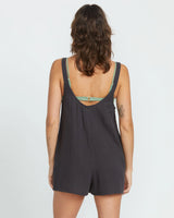 Lived-in cotton romper blends relaxed comfort and casual-cool style with adjustable straps, airy low back, and handy pockets.