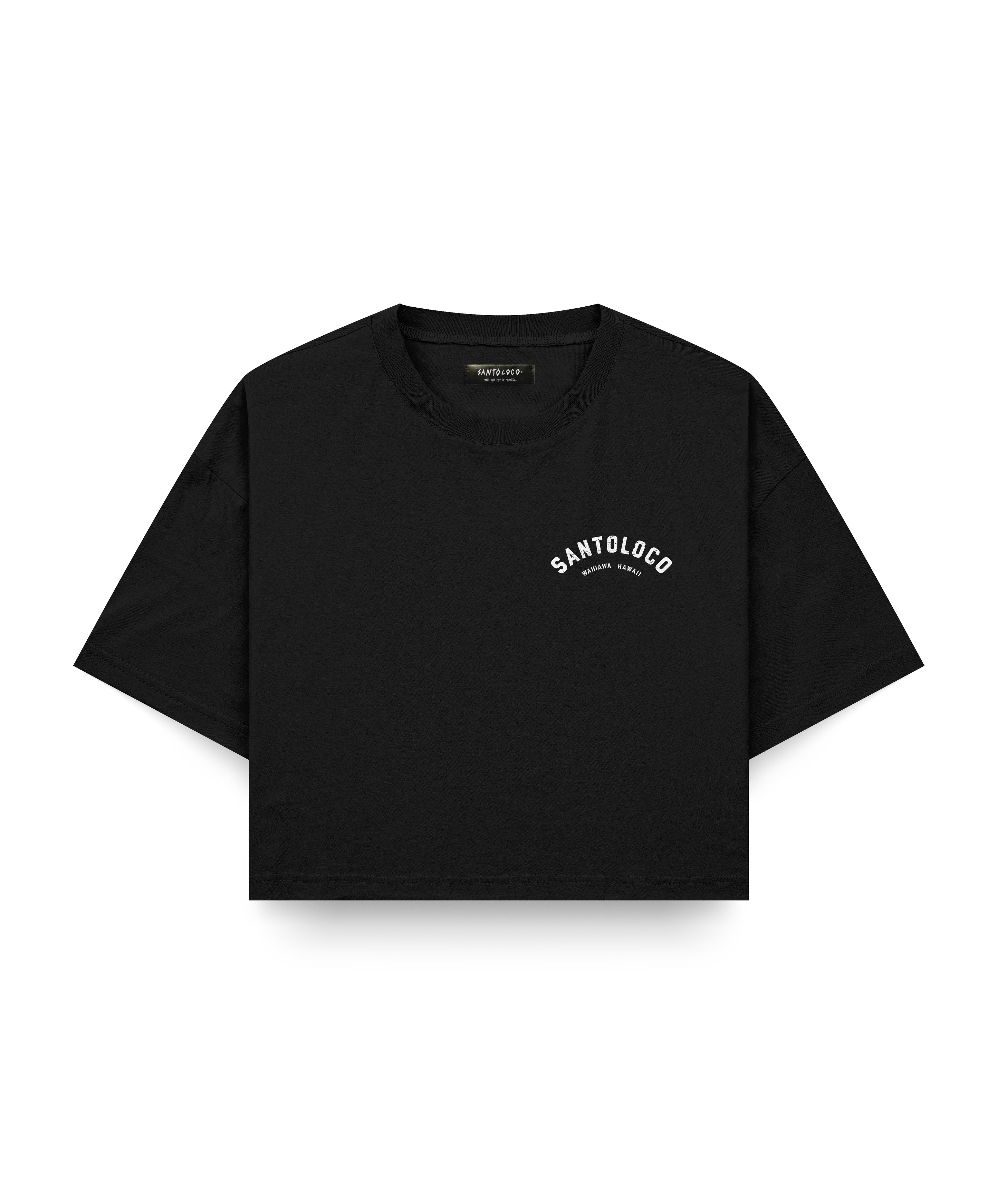 SantoLoco Women's Wahiawa Surfing is a Motorsport Crop Black