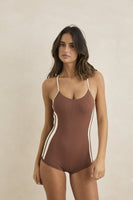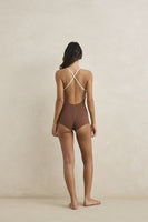 Rhythm Lily Rib Cross Back Surf Short One Piece Brown