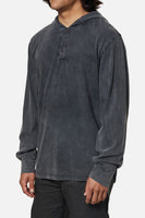 The Mesa Hide Pullover is made from a custom dyed 100% cotton jersey and features a three-button placket and pullover hood.